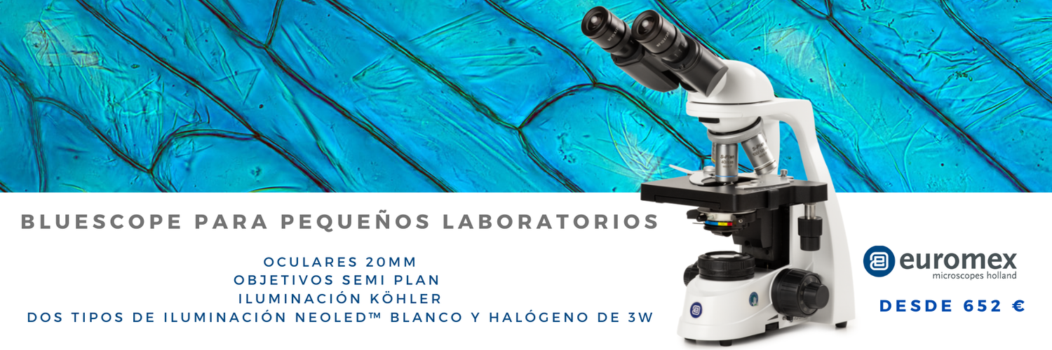 Microscopio digital binocular BioBlue con cámara integrada de 5MP y Tablet integradaObjetivos semi-planos 4x-10x-40x-100x , platina X-Y, iluminación NeoLED de 1W
