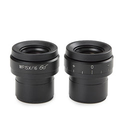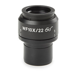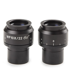 Pareja de oculares de gran campo HWF10x/22 mm. Con ajuste de ± 5 dioptrías integrado.